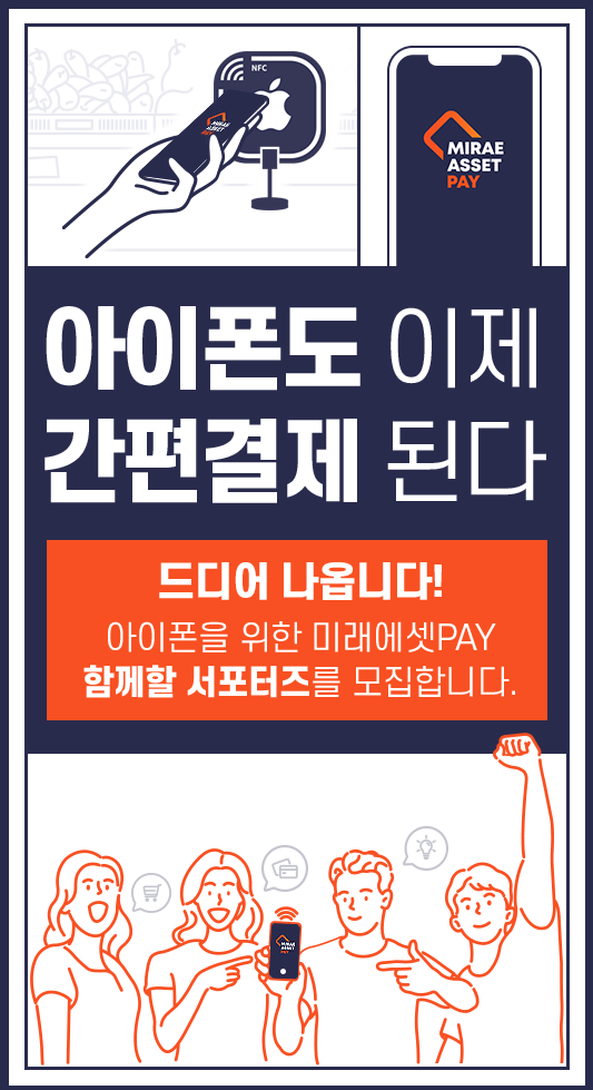Apple Pay 국내 도입이 불가능에 가까운 상황에 미래에셋페이에서 iPhone용 간편 결제 서비스를 개발했으며, 2021년 5월 30일까지 베타 서포터즈를 모집 중에 있습니다.