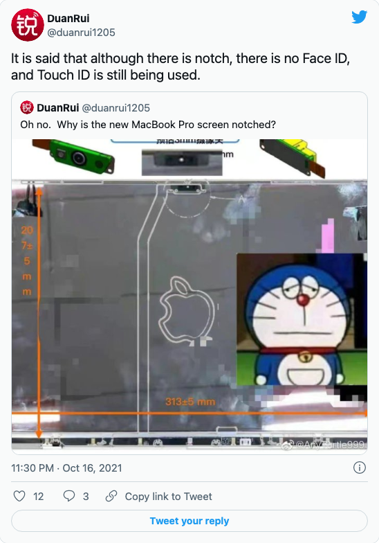 중국에서 유출된 내용을 공유하는 DuanRui가 공개한 사진에 따르면 이번 10월 Apple Event에서 공개될 것으로 예상되는 새로운 MacBook Pro 14형 및 16형은 노치가 탑재될 것으로 보입니다.