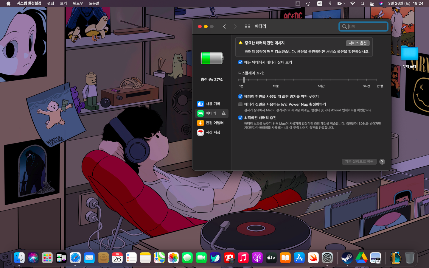 일단 교체해달라는 문구가 떠서 별 기대는 안 했습니다. 일단 기본적인 프로그램들을 깔고 쓰니까 3시간 정도 나오더군요